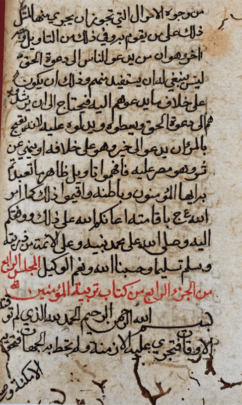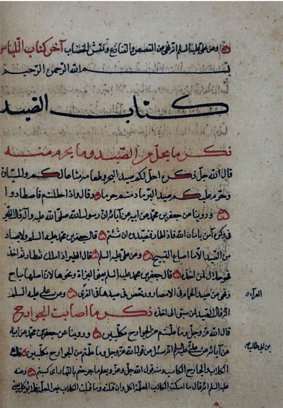 Centred on the Shi’i doctrine of Imamat, Al-Nu’man “codified Ismaili law by systematically collecting the firmly established legal hadiths transmitted from the ahl al-bayt“ (Daftary, A Short History of the Ismailis, p 76). He produced the compendium Kitab al-idah, his first legal work, which has not survived except for one small fragment. He also compiled (Kitab al-himma fi adab atba al- a’imma (The Book of Devotion: The Good Manners of the Followers of the Imam), in which he conveys “the fitting conduct towards the imam and above all in the presence of the imam […] It is a text of only four pages, but it includes all the principles of the Ismailis’ learning tradition” (Halm, The Fatimids and their Traditions of Learning, p 61).