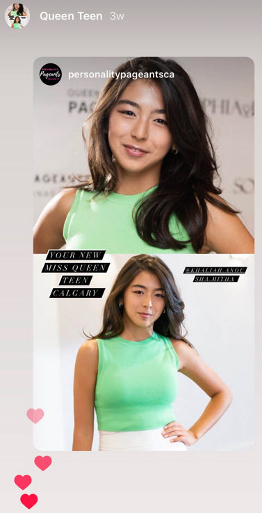 Queen Canada Pageants/SL Pageants Canada (@personalitypageantsca) is a pageant based in Alberta, Canada. They have curated a pageant programme base on personality, community involvement, empowerment, personal growth, and leadership. This pageant system is an inclusive one that accepts delegates of all heights, sizes, disabilities, sexual orientation, and religious belief from ages 13-30.