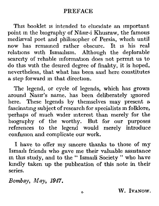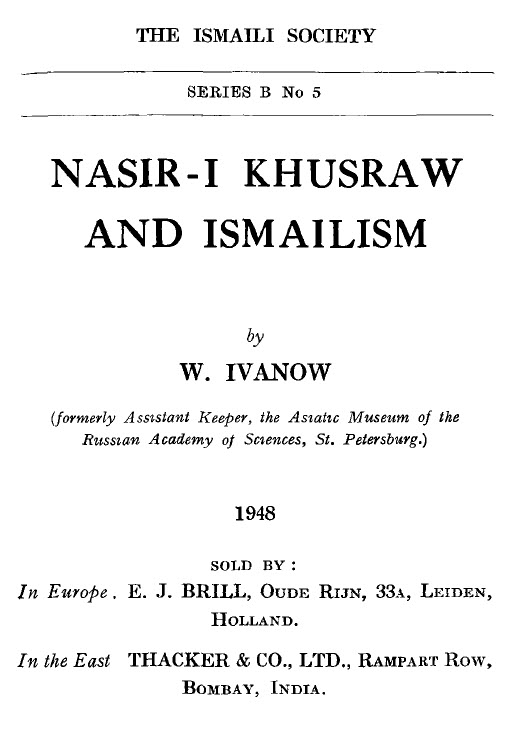 Nasir Khusraw and Ismailism, by Ivanow, page 1.