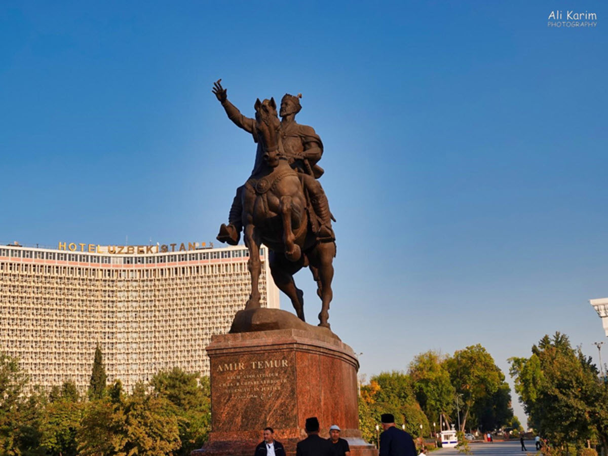 Amir Timur statue in front of Hotel Uzbekistan. Image provided by contributor