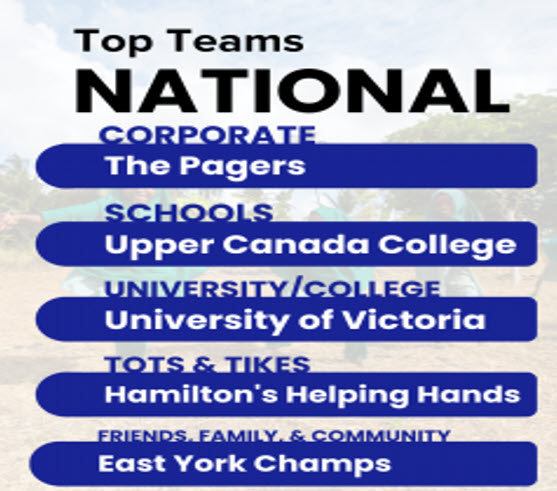 Top National Team in the Friends, Family & Community Category is East York Champs Team. Image provided by contributor
