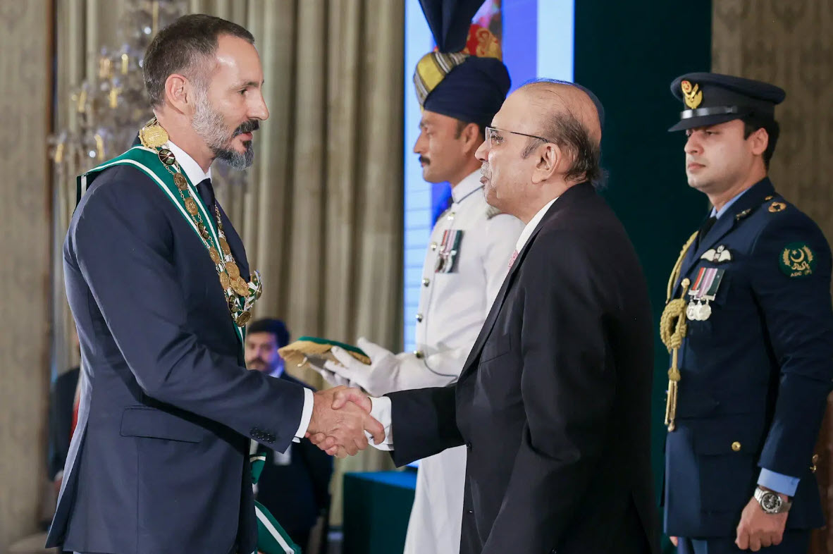 Islamabad, Pakistan, 7 June 2024 – The President of the Islamic Republic of Pakistan, Asif Ali Zardari, today conferred the Nishan-i-Pakistan, the nation’s highest civilian award, on Prince Rahim Aga Khan. The award recognises individuals who have rendered services of the highest distinction to Pakistan, and was given at Aiwan-e-Sadr, the President’s official residence in Islamabad. Prince Rahim is currently visiting Pakistan to review projects of the Aga Khan Development Network (AKDN) in renewable energy, microfinance and information technology, as well as meet government officials and leaders of AKDN and the Ismaili community.