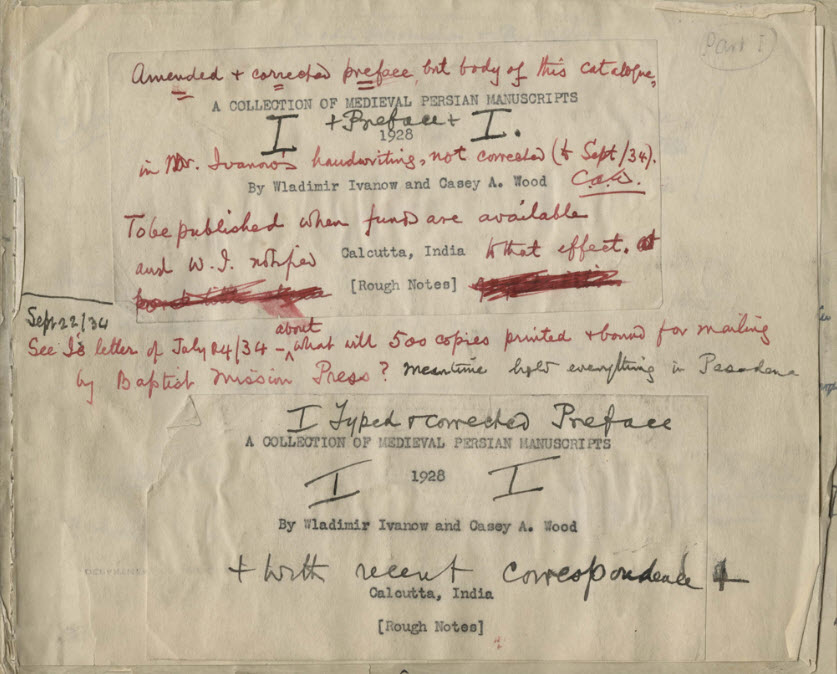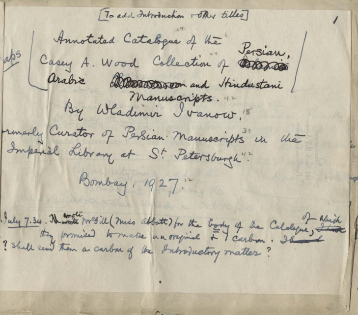 In 1921, Ivanow went to India, beginning his long residency of some four decades. Shortly after settling in Calcutta (now Kolkata), he worked at the Asiatic Society of Bengal, cataloguing their extensive collection of Persian manuscripts. He completed this task, publishing two annotated volumes and supplements which were published in 1924-1928. In the same decade, his first major Ismaili work (Ismailitica) was published in Memoirs of the Asiatic Society of Bengal. In 1928, Ivanow went to Persia to collect more manuscripts for the Asiatic Society, making the first of several visits to Alamut and other Nizari Ismaili strongholds.