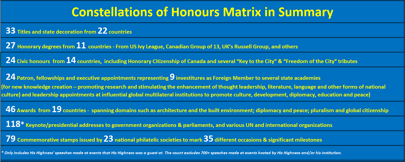 AKIV Constellation of Honours Matrix 1957-2025-03-16 – Summary March 16, 2025 Global: Why the World Celebrates His Late Highness Prince Karim Aga Khan IV | Constellation of Honours: Over 300 Accolades from 55 Countries 1644 × 660