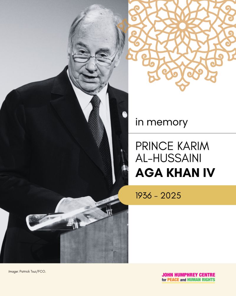 AKIV – John Humphrey Centre for Peace and Human Rights May 12, 2025 Global: Why the World Celebrates His Late Highness Prince Karim Aga Khan IV | Constellation of Honours: Over 300 Accolades from 55 Countries 800 × 1000 His Late Highness Prince Karim Aga Khan IV. Image credit: John Humphrey Centre for Peace and Human Rights His Late Highness Prince Karim Aga Khan IV. Image credit: John Humphrey Centre for Peace and Human Rights
