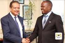 Kampala, Uganda. April 23, 2025: Buganda’s Minister Israel Kazibwe Kitooke and Amin Mawji OBE, AKDN Representative in Uganda, exchanging warm greetings. Image credit: Buganda UK