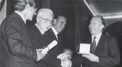 Rome, Italy. October 16, 1988: His Highness Prince Karim Aga Khan IV is conferred Cavalierre del Lavoro, Italy’s highest state honour, by President Francesco Cossiga (L). Image credit: Ismaili USA, March 21, 1989 edition.