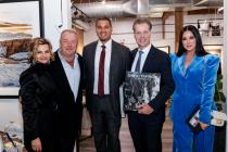 Chicago Bears head coach Matt Eberflus is presented with the Iron Horse Award during a ALS United Chicago fundraiser- with Arica Hilton, David Yarrow, Ryan Poles, Coach Eberflus and Kelly Eberflus. Image credit: Jacob Funk