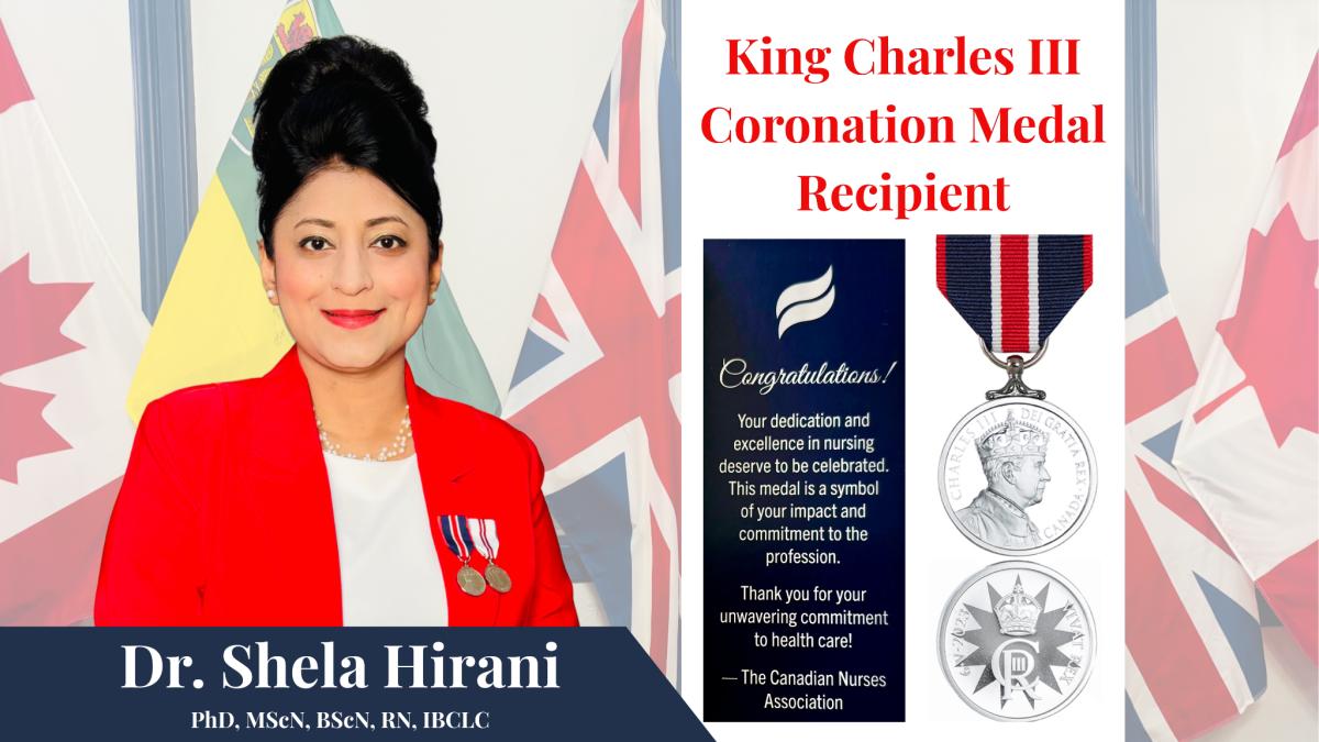 Dr Shela Hirani, University of Regina’s Professor and the former recipient of the Queen Elizabeth II Platinum Jubilee Medal from the Canadian Government, was awarded the King Charles III Coronation medal by the Council of International Neonatal Nurses in recognition of her contributions to nursing.