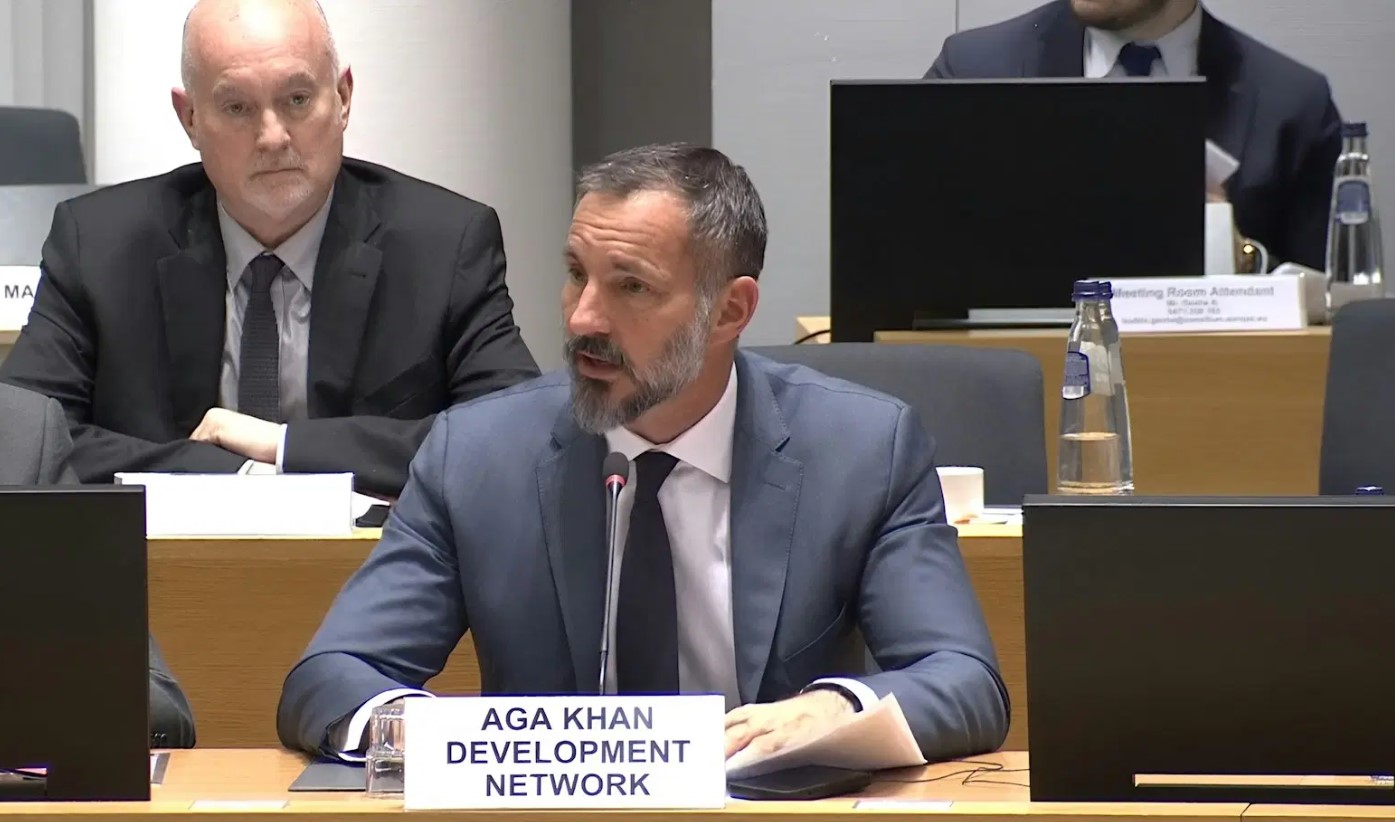 Brussels, Belgium. March 17, 2025: His Highness the Aga Khan, Prince Rahim al-Hussaini Aga Khan V, ddresses the European Commission conference “Standing with Syria: meeting the needs for a successful transition”. Image credit: European Union