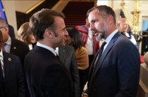 Paris, France. March 27, 2025: His Highness the Aga Khan, Prince Rahim al-Hussaini Aga Khan V, in conversation with President Emmanuel Macron at the Nutrition for Growth (N4G) Summit.