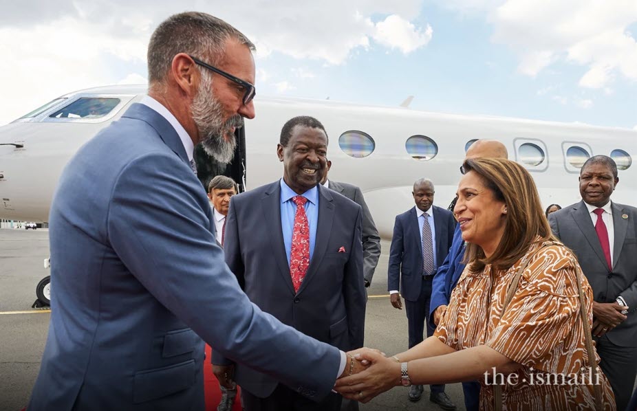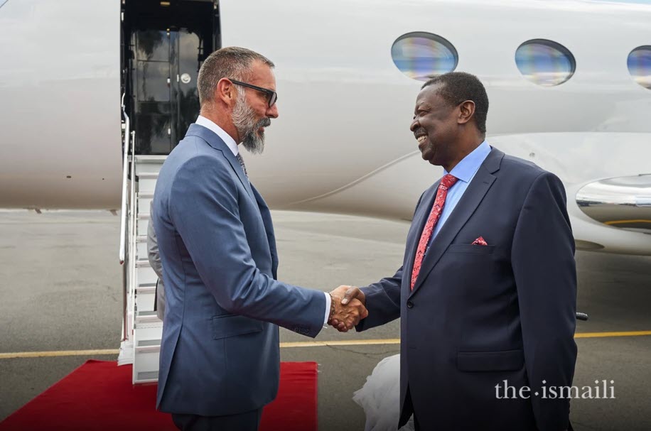 Mawlana Hazar Imam arrived in Nairobi, Kenya, in the afternoon on Monday, 25 August. Hazar Imam is on a State visit at the invitation of His Excellency William Ruto, President of Kenya. He was received by Honourable Musalia Mudavadi, Prime Cabinet Secretary and Cabinet Secretary for Foreign Affairs, and Honourable Aden Bare Duale, Cabinet Secretary for Health. Amin Mawji, AKDN Representative to Kenya, and Shamira Dostmohamed, President of the Ismaili Council for Kenya were also present.