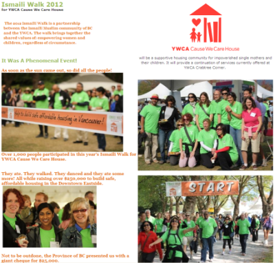 September 21, 2014: Ismaili Walk for YWCA Cause We Care House kicks off their 2014…