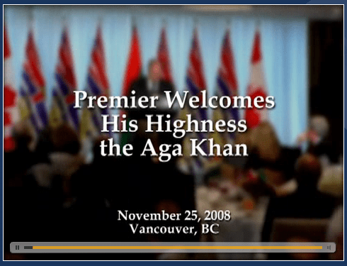 November 25, 2008 Premier Gordon Campbell hosted His Highness the Aga Khan for a meeting…