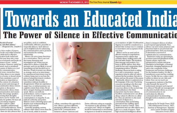 Authored by Dr Farida Virani, HOD – HR & Behavioural Sciences, MET- Institute of Management-…