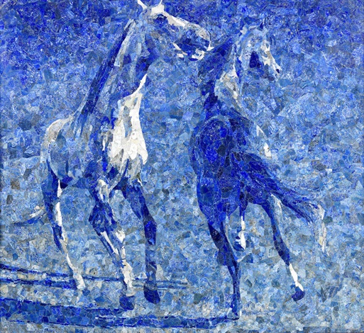 Lapis Lazuli Mosaic: Horses – by Ismail Gulgee