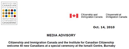 Oct. 14, 2010 – Citizenship and Immigration Canada and the Institute for Canadian Citizenship in…