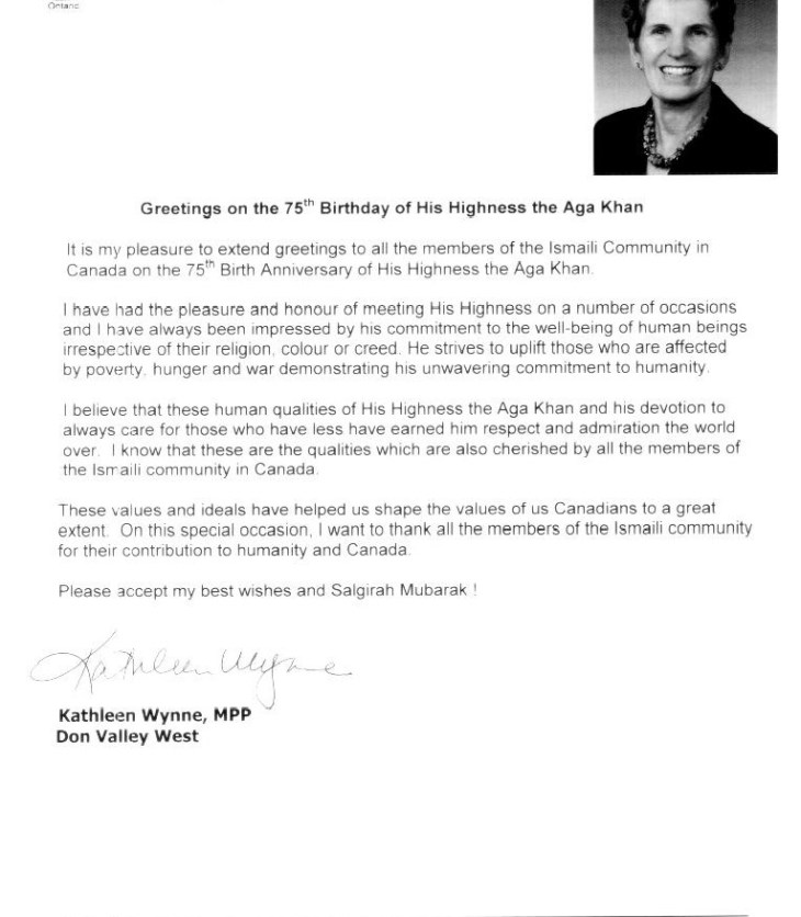 Eid-ul-Fitr Earlier: Premier of the Province of Ontario, Kathleen Wynne Wishes Happy and Meaningful Imamat…