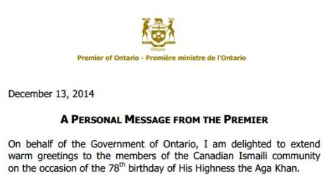 Ontario, Canada’s Office of Premier adds Imamat Day July 11 and December 13, the birthday…