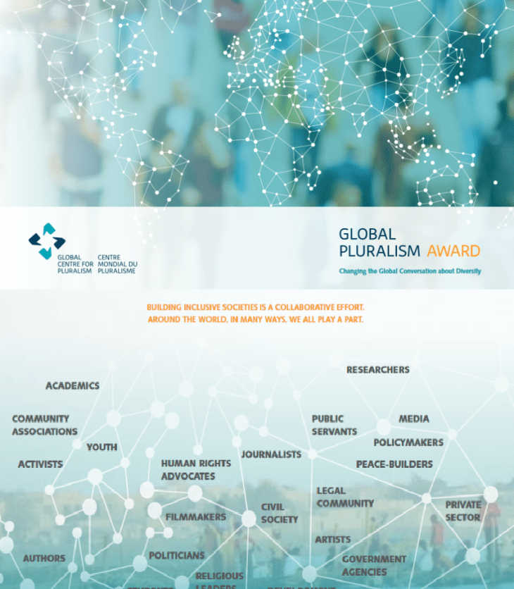 In advance of Canada’s 150th anniversary of Confederation, Global Centre for Pluralism launches a biennial Global Pluralism Award to be awarded every two years beginning 2017.