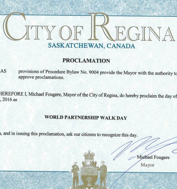 Mayor Fougere proclaims Sunday, May 29th as World Partnership Walk Day